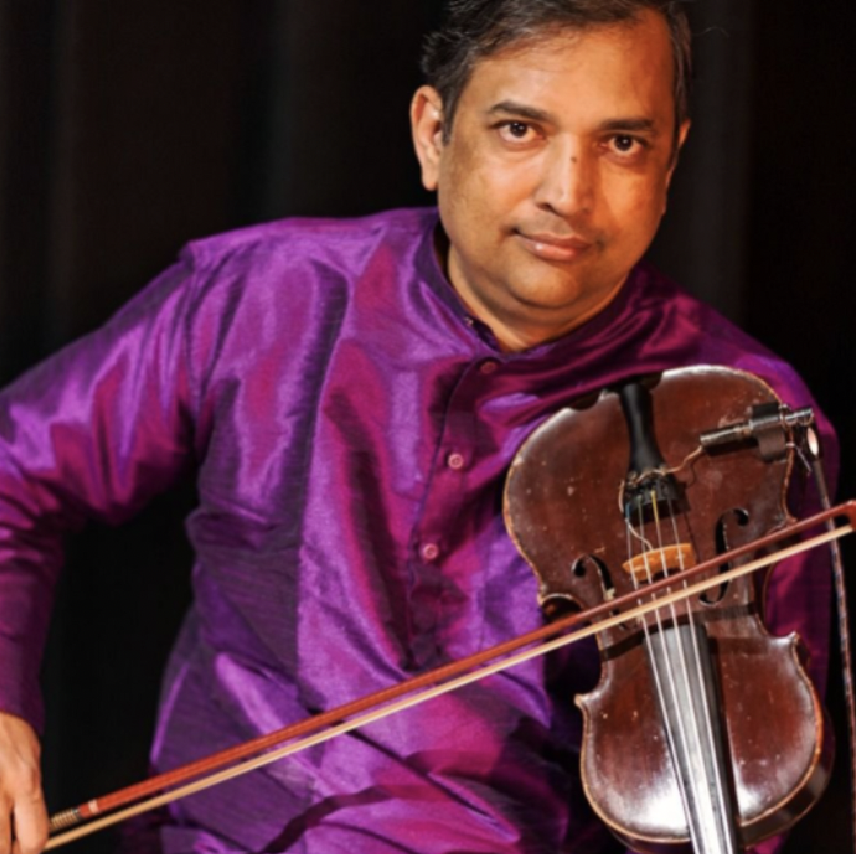 Ananda Nadayogi is a highly skilled Carnatic violinist and vocalist who trained for 12 years under Padmabhooshan Sri Lalgudi G. Jayaraman and Sangeetha Kalanidhi Sri Lalgudi GJR Krishnan. Based in Austin, TX, he teaches Carnatic violin and vocal to about 100 students at Samspra Academy. Ananda also conducts meditation and Nadayoga workshops and collaborates on meditation albums, highlighting his diverse musical journey.